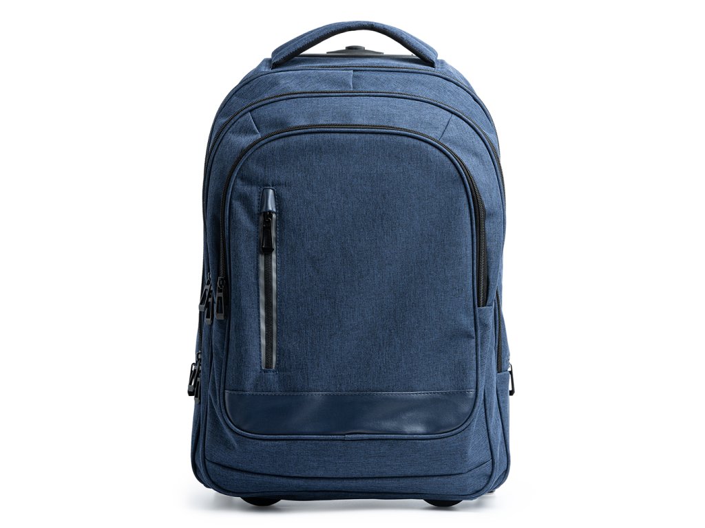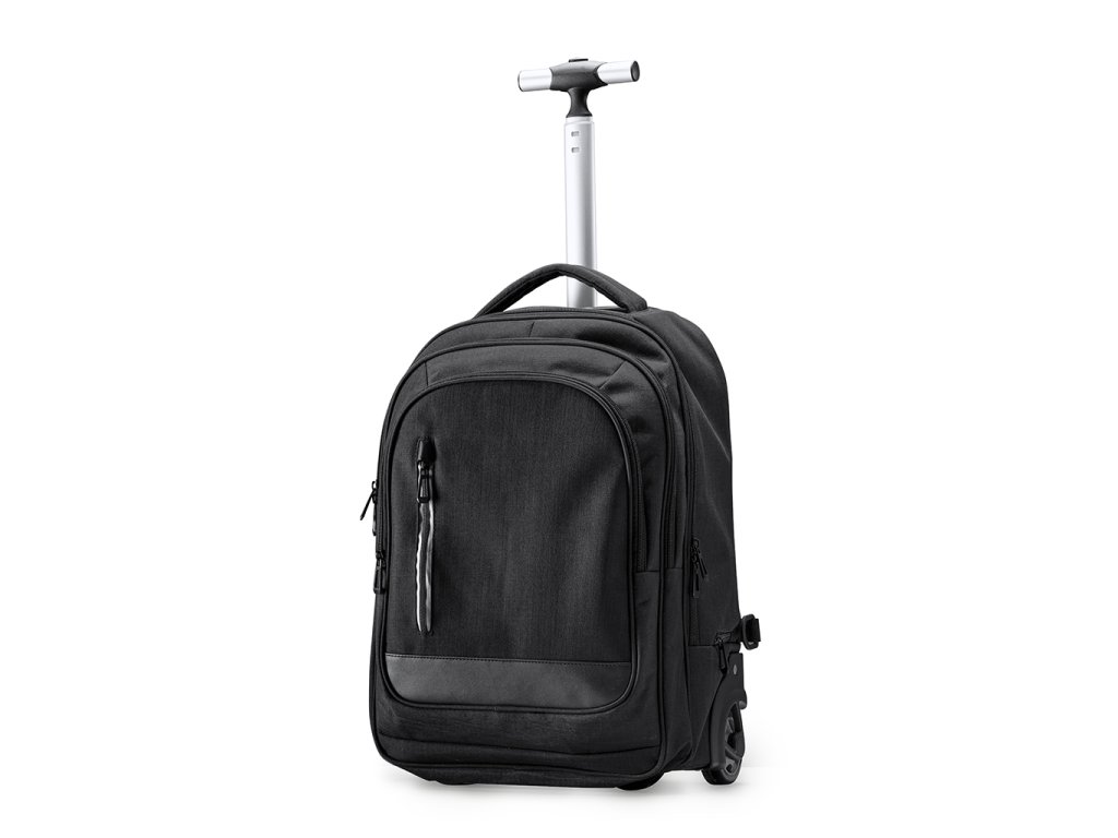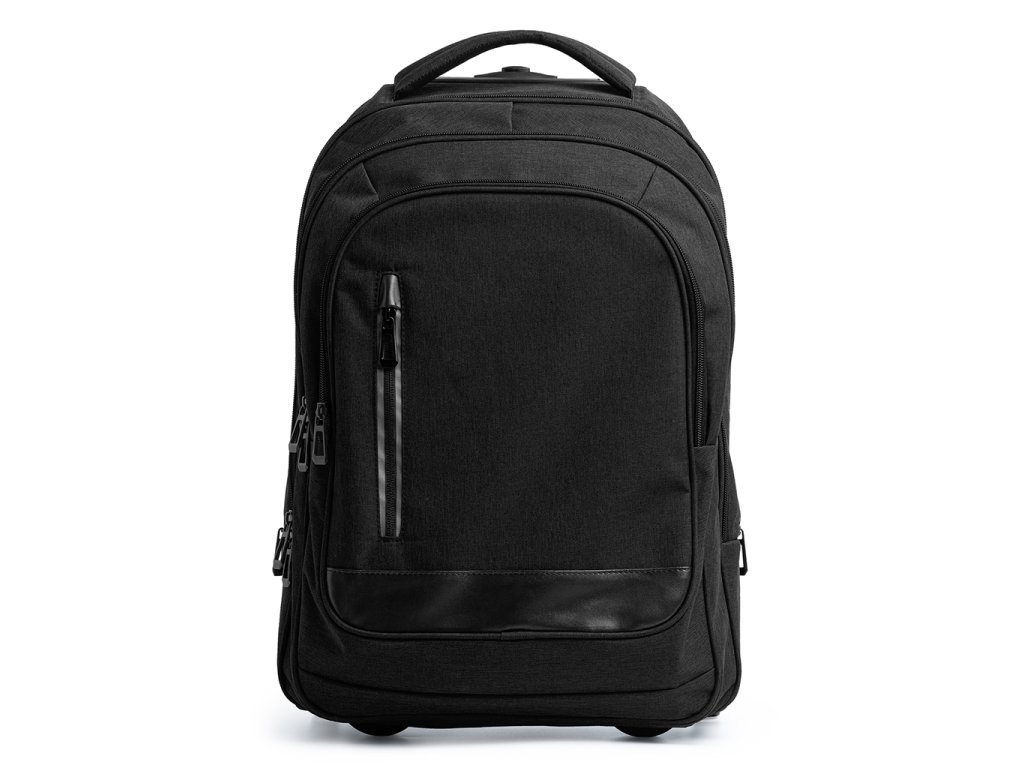 Batoh na kolečkách vyrobený z vřesového polyesteru 300D. Hlavní prostorná kapsa s vnitřní polstrovanou přihrádkou, ideální pro notebooky do velikosti 15". Dvě kapsy s vnitřními přihrádkami a přední kapsa. Vysoce kvalitní a odolný skelet. Nastavitelné polstrované ramenní popruhy. Kryty koleček odolné proti ušpinění.