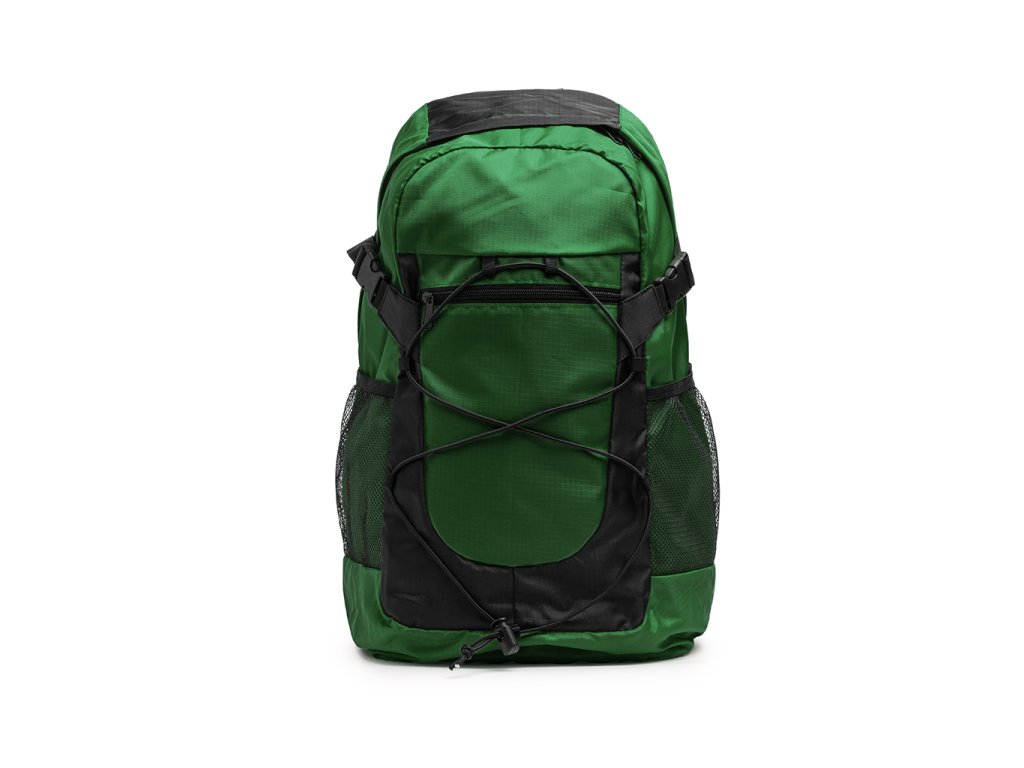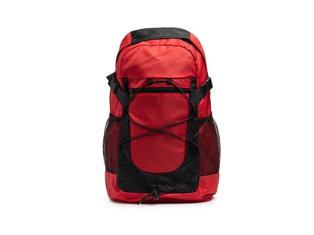 Sportovní batoh z vysoce odolného ripstop nylonu 210D. Objem 30 litrů. Dvojitá hlavní přihrádka se zapínáním na zip a vnitřními kapsami. Přední přihrádka na elastickou bungee šňůru a boční síťované kapsy. Polstrovaná záda a ramenní popruhy. Součástí je nastavitelný boční popruh.