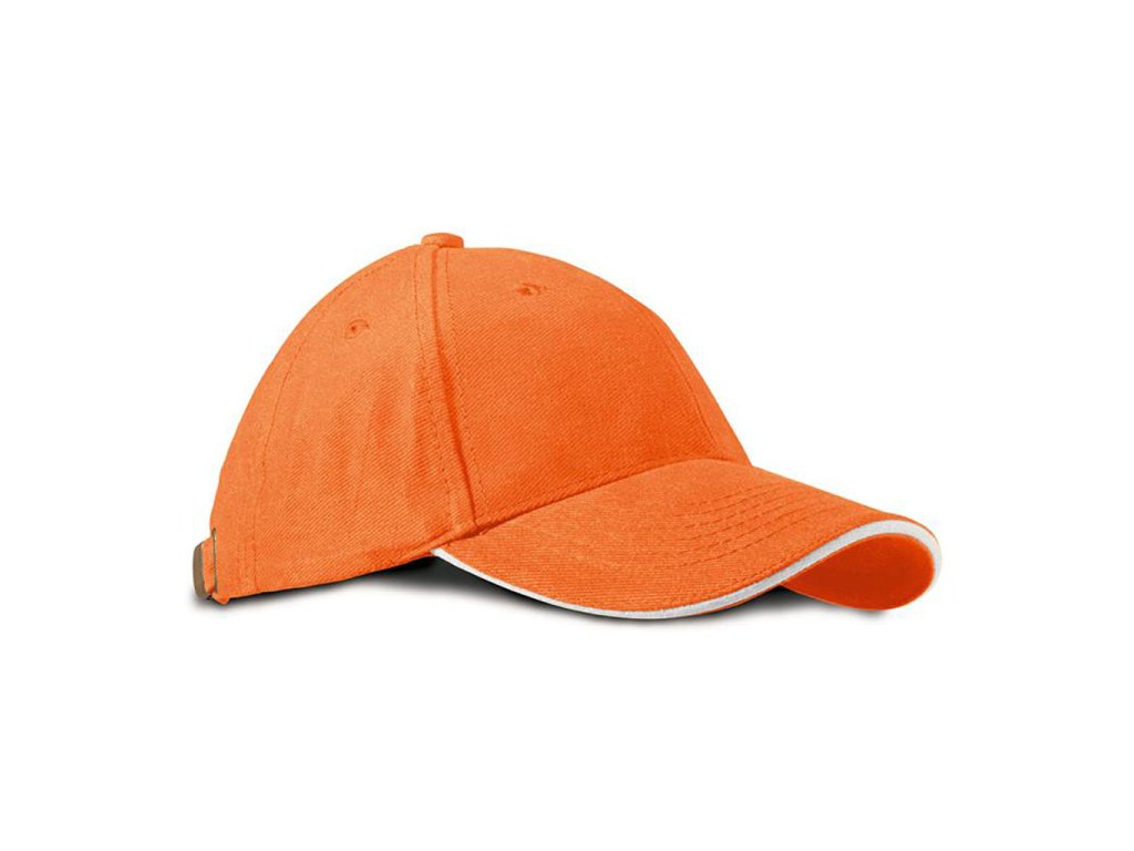 Šesti panelová čepice s kontrastní linkou vlepenou v kšiltu, zapínání na kovovou sponu.Doplňkové parametry