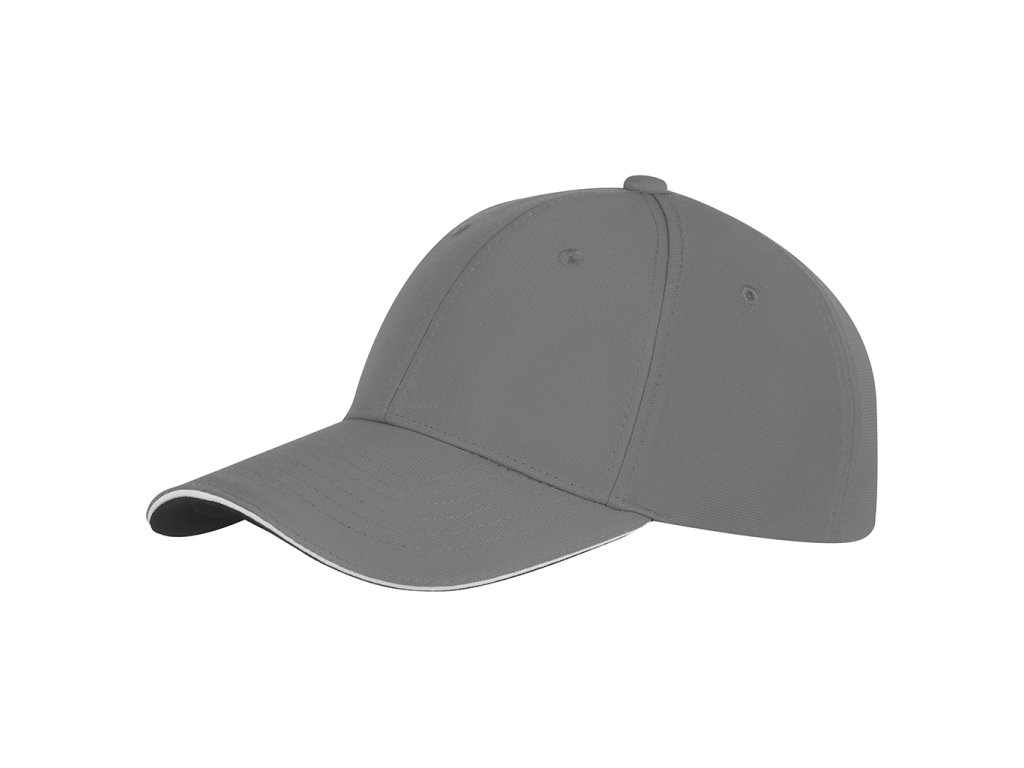 Šestipanelová čepice z žebrovaného polyesteru se spandexem. V kšiltu je všitý proužek v doplňkové barvě. Spodní strana kšiltu je vždy v černé barvě. Obšité větrací otvory, bavlněný potící pásek, zapínání na kovovou sponu.Doplňkové parametry
