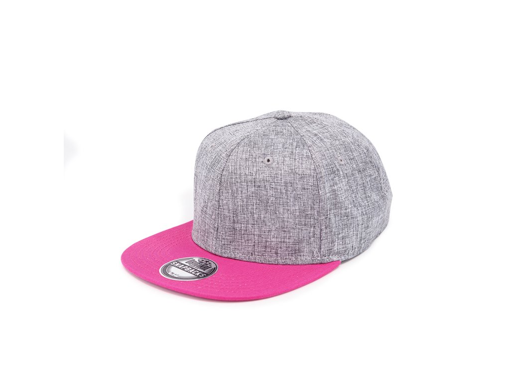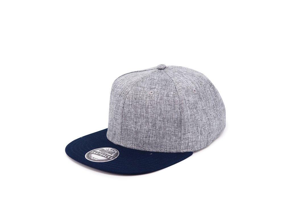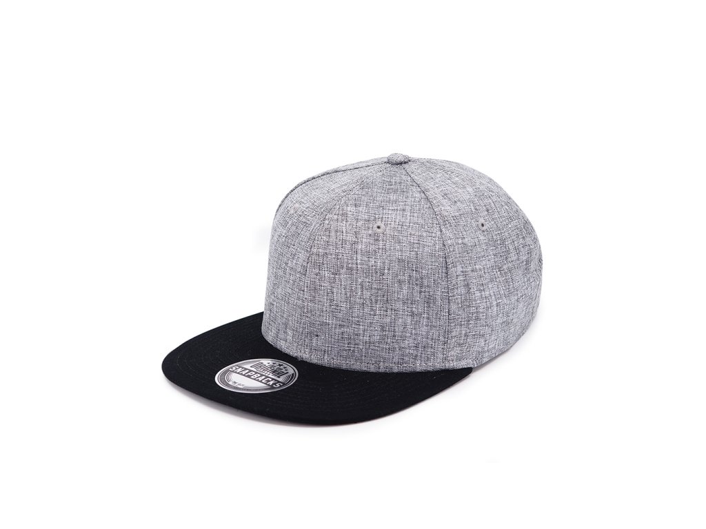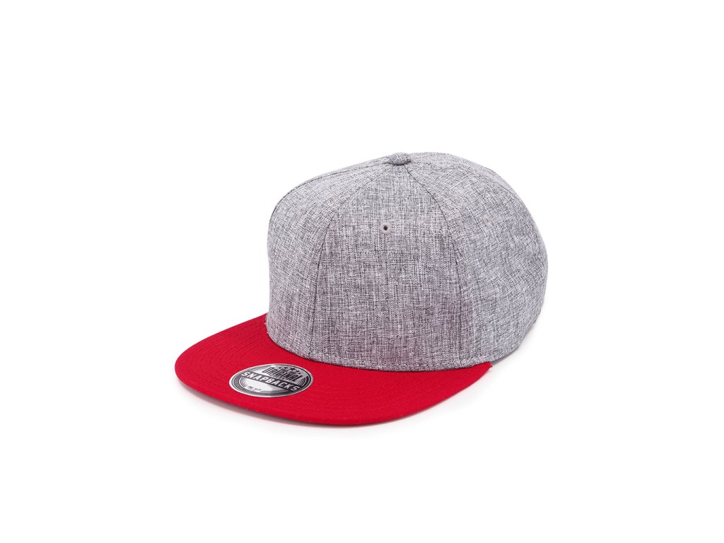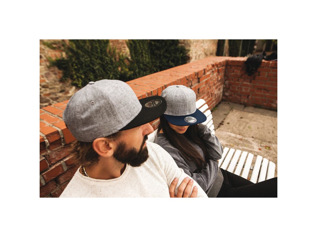 Šestipanelová čepice s plochým kšiltem a melírovým efektem. Čepice má vyztužené čelo, bavlněný potící pásek, obšité větrací otvory a plastové zapínání.Doplňkové parametry