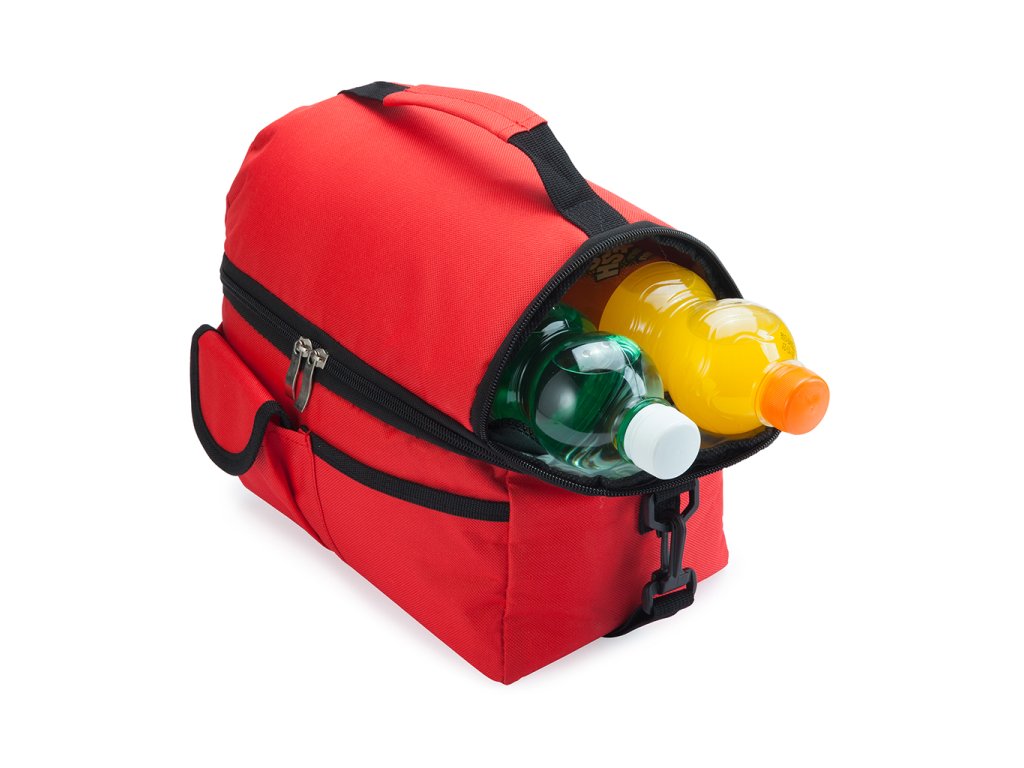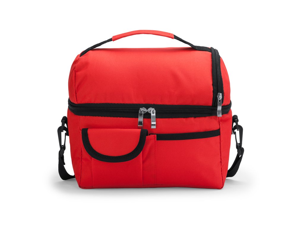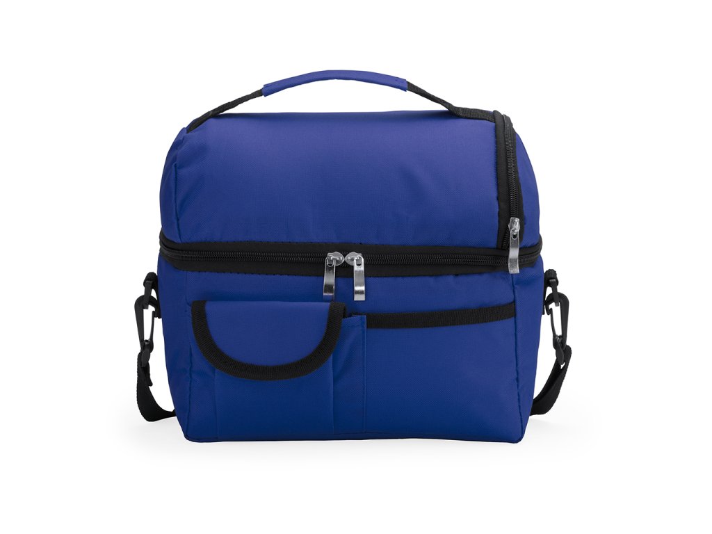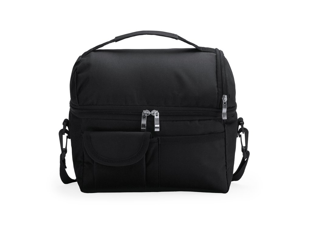 Víceúčelová chladicí taška z polyesteru 600D. Izotermické vnitřní přihrádky a praktické vnější kapsy. Nastavitelný a polstrovaný ramenní popruh s karabinou.Doplňkové parametry
