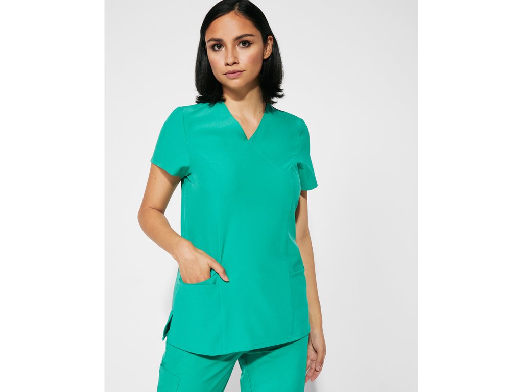 Dámská pracovní blůza s krátkým rukávem,a překříženým výstřihem. Blůza má dvě kapsy.Doplňkové parametry