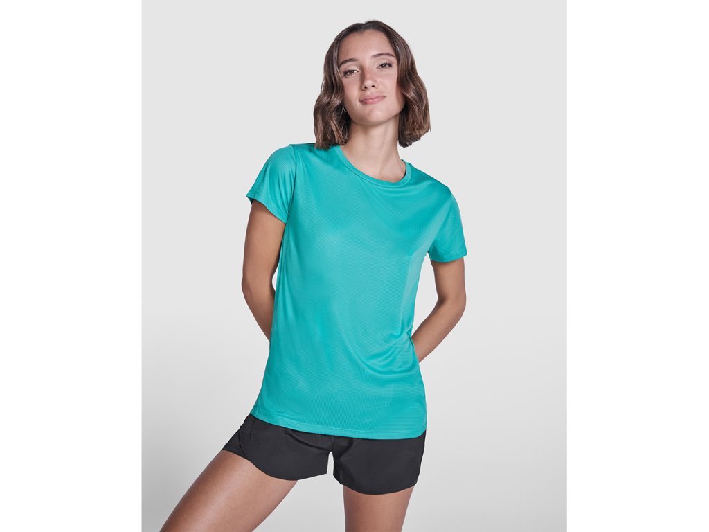 Dámské technické tričko s krátkým rukávem s přiléhavým střihem. Límec se sladěnými švy. Zadní lem o něco delší než přední. Boční švy posunuté dopředu.Doplňkové parametry