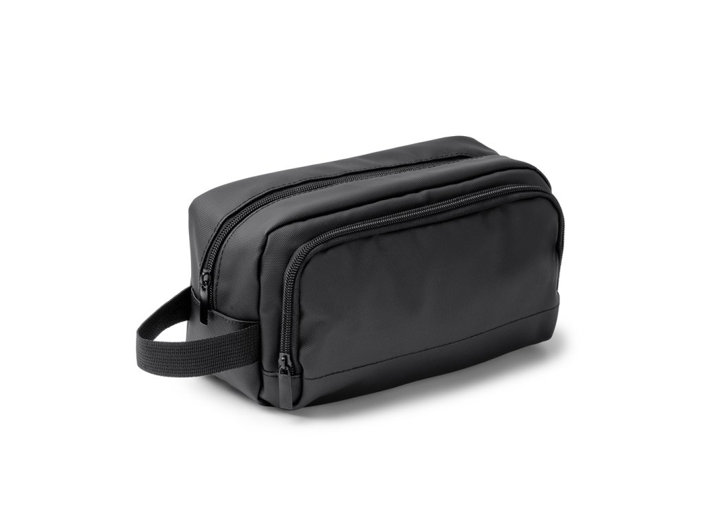Toaletní taška z PU kůže s dvojitou přihrádkou a zapínáním na zip, ideální pro bezpečné a stylové uspořádání toaletních potřeb. Součástí je držadlo na přenášení.Doplňkové parametry