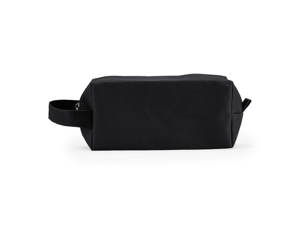 Toaletní taška z polyesteru 600D se zipem a praktickým uchem na přenášení.