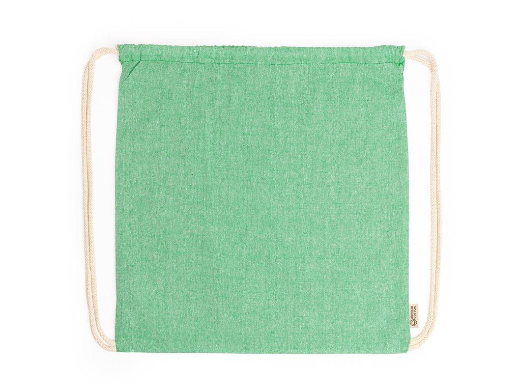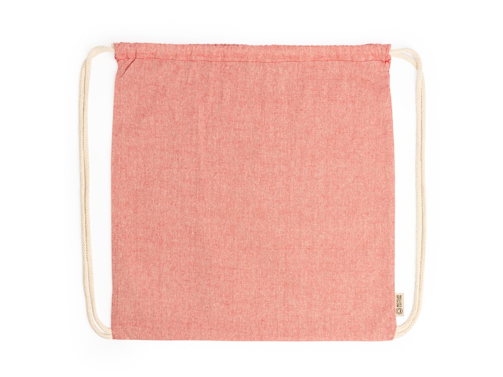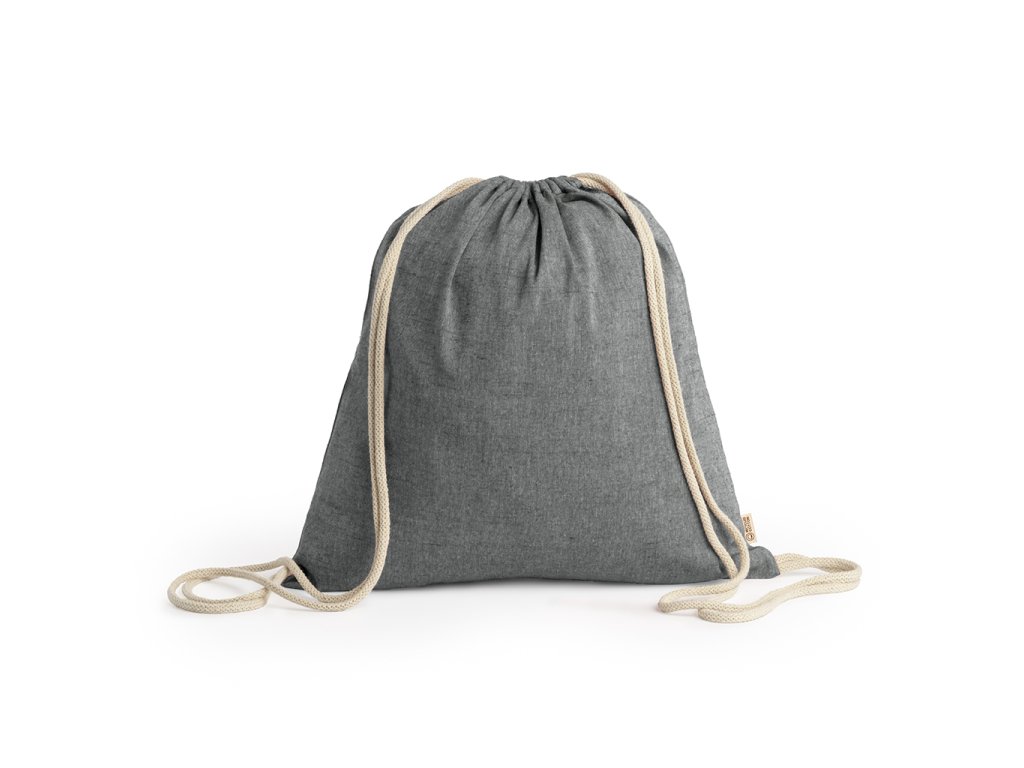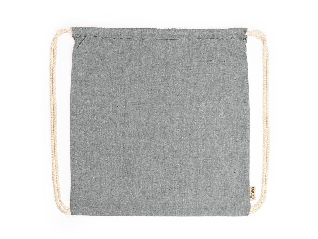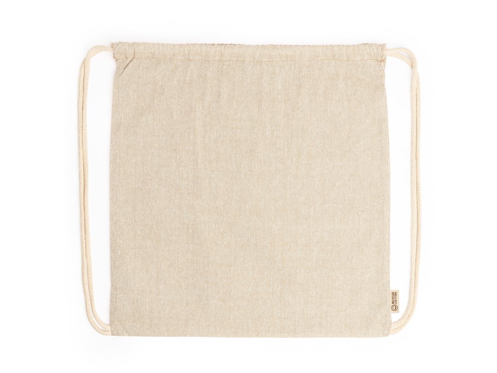 Batůžek se stahovací šňůrkou z recyklované bavlny o gramáži 120 g/m² v povrchové úpravě vřes a se šňůrkami v přírodní barvě.