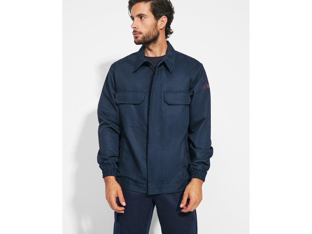 Bunda z nehořlavé látky s celopropínacím zipem s klopou se zapínáním na suchý zip. Bunda má dvě přední kapsy na hrudi s klopou a zapínáním na suchý zip, dvě boční kapsy s klopou a knoflíkem a elastické manžety. Stahovací elastický boční lem. Vyhovuje normě CE dle následujících norem: UNE-EN ISO 13688:2013/A1:2021; UNE-EN ISO 11611:2017: Clase2; UNE-EN ISO 11612:2018: A1, B1, C1, E3, F1; UNE-EN 1149-5:2008; UNE-EN 61482-1-2:2015: APC = 1Doplňkové parametry