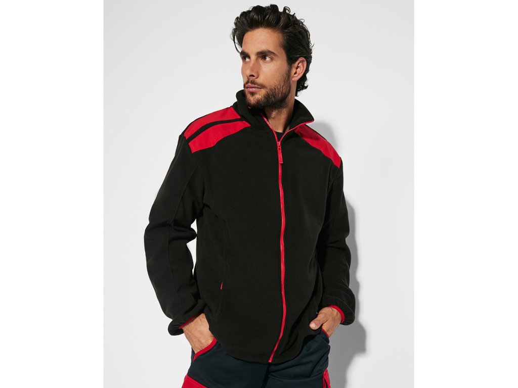 Pánská fleecová mikina s kombinací barev. Vysoký límec a kontrastní celopropínací zip. Ramena a detaily v kontrastní barvě. Boční kapsy na zip. Elastické manžety a boční stahovaní na spodním lemu.