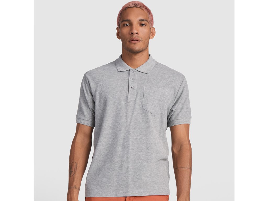 Pánská polokošile s krátkým rukávem a kapsou na levé straně na hrudi. Límec a ukončení rukávů z žebrované látky 1x1. Zapínání na 3 knoflíky.Doplňkové parametry