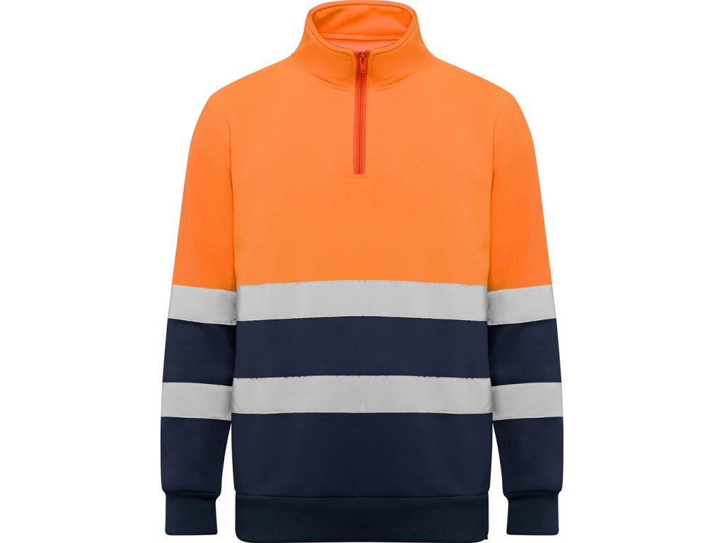 Pánská reflexní mikina s polovičním zipem, vysokým límcem, chráničem brady a zesíleným prošitím na vnitřním límci. Mikina má vodorovné reflexní pruhy na hrudí a na rukávech, 1x1 žebrovanou látku na manžetách a lemu. Certifikace CE podle norem: UNE-EN ISO 13688:2013/A1:2021 a UNE-EN ISO 20471/2013/A1:2017. Třída II.Doplňkové parametry