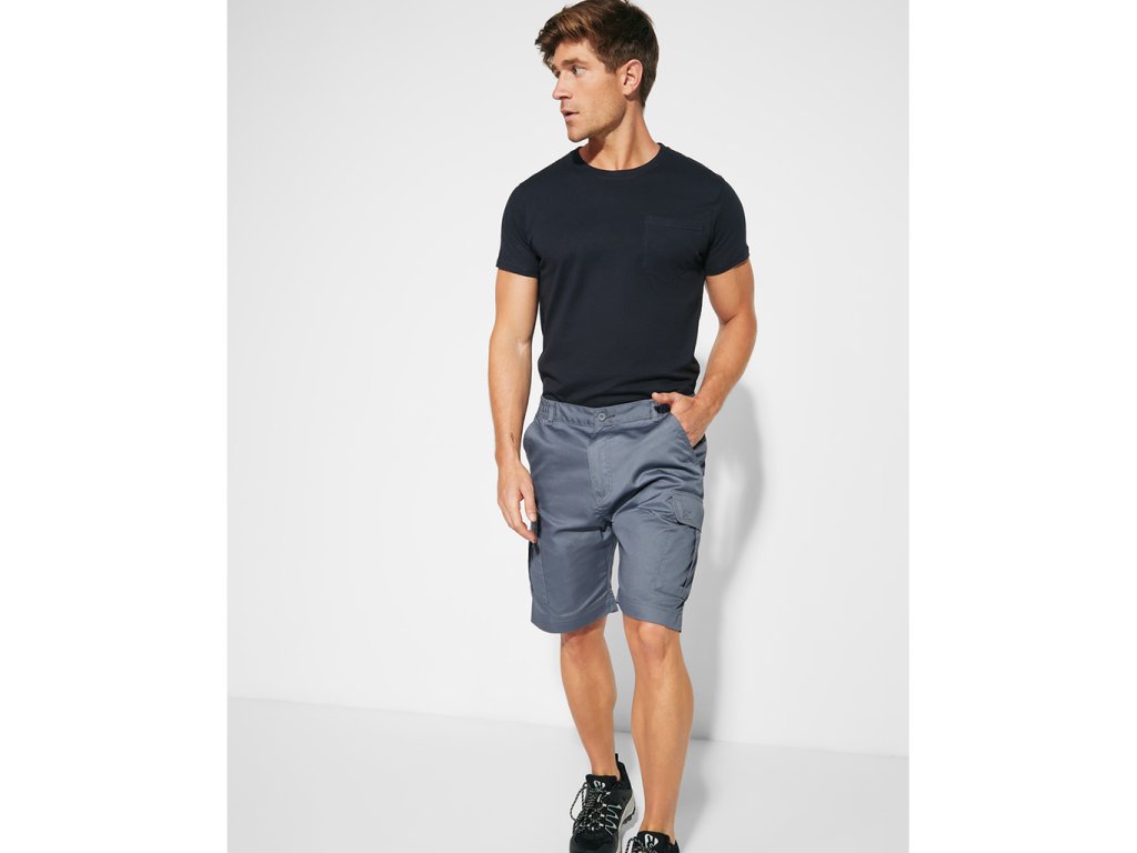 Pánské pracovní bermudy. Elastické stahování na bocích. Dvě přední kapsy. Dvě boční kapsy s patkou se suchým zipem. Dvě zadní kapsy na knoflík.Doplňkové parametry