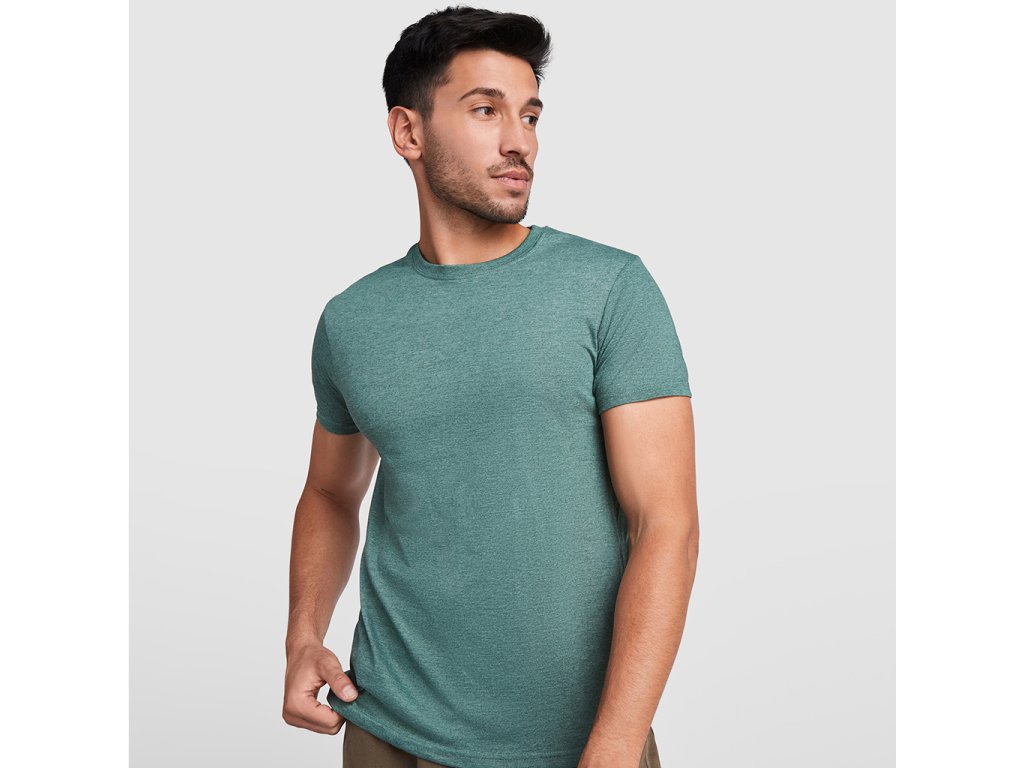 Tričko s krátkým rukávem,melír tkanina. Tričko má kulatý výstřih z žebrovaného úpletu 1x1, zpevněné kryté švy na průkrčníku a je bez bočních švů.Doplňkové parametry