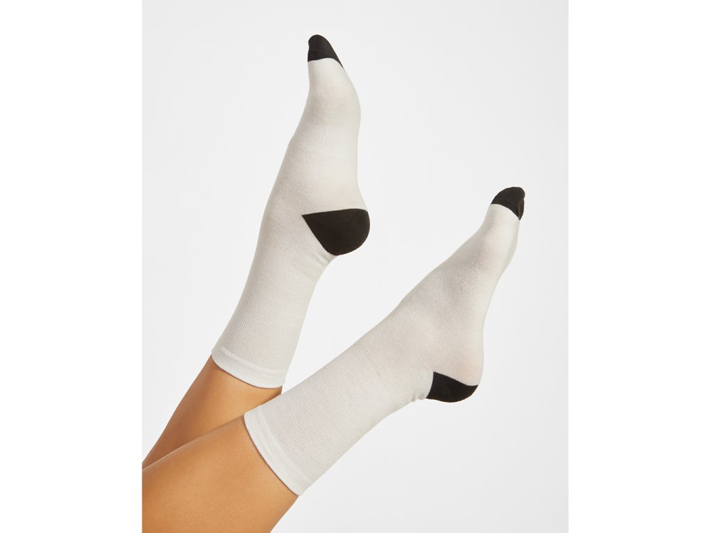 Ponožky do půli lýtek pro sublimaci. Pata s špička v černé barvě. Tkanina na dotyk bavlnněná.