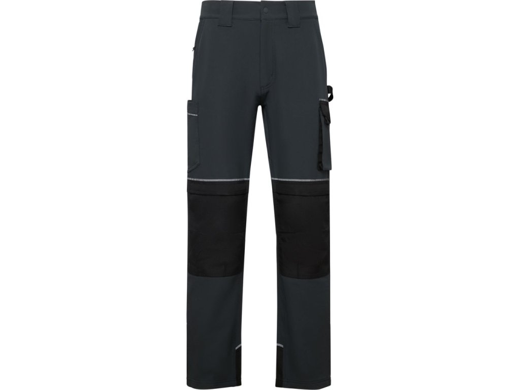 Strečové pracovní kalhoty s více kapsami.· Pas se dvěma předními a třemi zadními poutky na opasek se středovým poutkem zvláštní šířky.· Zapínání na zip a pogumovaný knoflík.· Dvě přední kapsy klasického střihu, jedna z nich s boční kapsou a zipem.· Cargo kapsa na levé straně s klopou, reflexním páskem a zapínáním na suchý zip.· Kapsa s nášivkou na pravé straně s reflexním páskem a zapínáním na suchý zip.· Kapsa na kolenní chrániče s pevnou klopou, reflexním páskem a zapínáním na suchý zip.· Pouzdro na opasek na levé straně pro uložení nářadí.· Zadní sedlo se dvěma kapsami s lemováním a obrácenými zipy.· Zesílený spodní lem a reflexní pásek na zádech.· Trojité zpevňující prošití na bocích a v rozkroku s odpovídající nití.· Zesílení na zadní straně rozkroku.