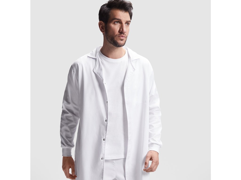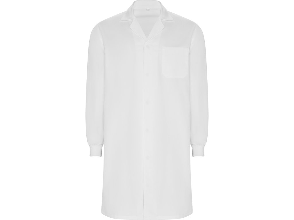 Pracovní unisex plášť Mederi s dlouhým rukávem, který má nastavitelné žebrované manžety 1x1 a vnitřní kapsu na levé straně hrudi. Celorozepínání pomocí vnitřiních knoflíků.