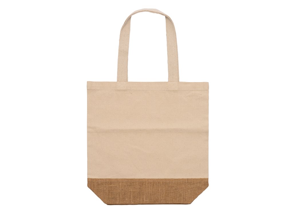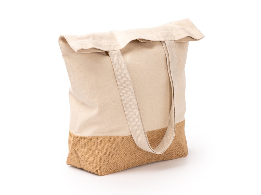 Taška z recyklované bavlny o gramáži 330 g/m² a přírodní juty. Ucha dlouhá 70 cm.Doplňkové parametry