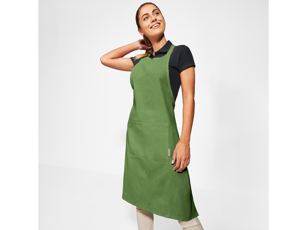 Zástěra ze 100% konopné tkaniny (200 g/m²), s přední kapsou. V jedné velikosti, s možností přizpůsobení.